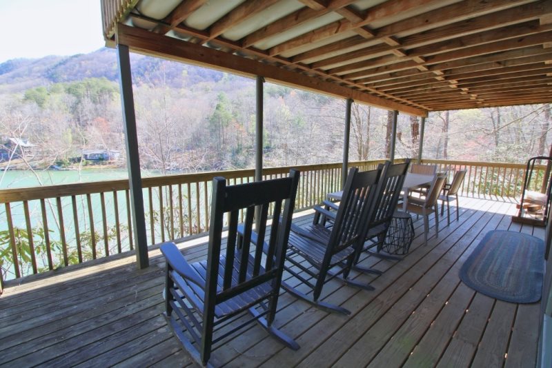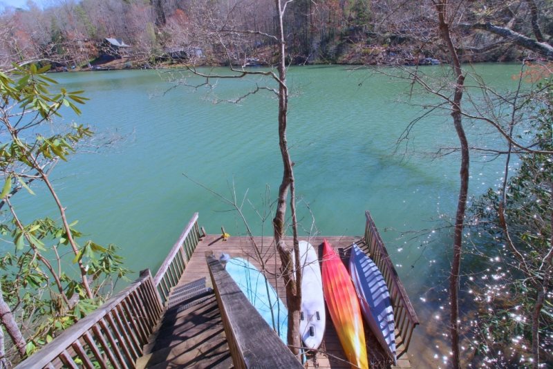 Enjoy this peaceful Lake Front home situated on beautiful Bald Mountain Lake. Breathtaking lake and mountain views await you along with a private dock. Dip your toes in the cool mountain water and soak in the sun at this rustic cabin retreat. This 4 bedroom and 3 bath home offers easy access to nearby amenities including the private beach on Lake Lure, Restaurants, Golf, Wellness Center and much, much more. The living room includes a large TV and stone fireplace. The kitchen is fully equipped with everything you need. Private deck with plenty of seating. Downstairs you can find another sitting area with a beautiful fireplace. The spacious decks make a peaceful spot to take in the surrounding serenity whether that’s with the sunrise or sunset.